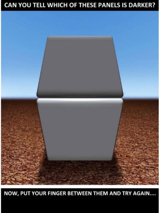 Our perception of how bright something is changes depending on what surrounds it. The example above shows the same 50 per cent grey surrounded by black and white. Can you see how the grey looks much darker against the white background? This effect happens all the time when we draw from observation and it can really throw off our value judgements.